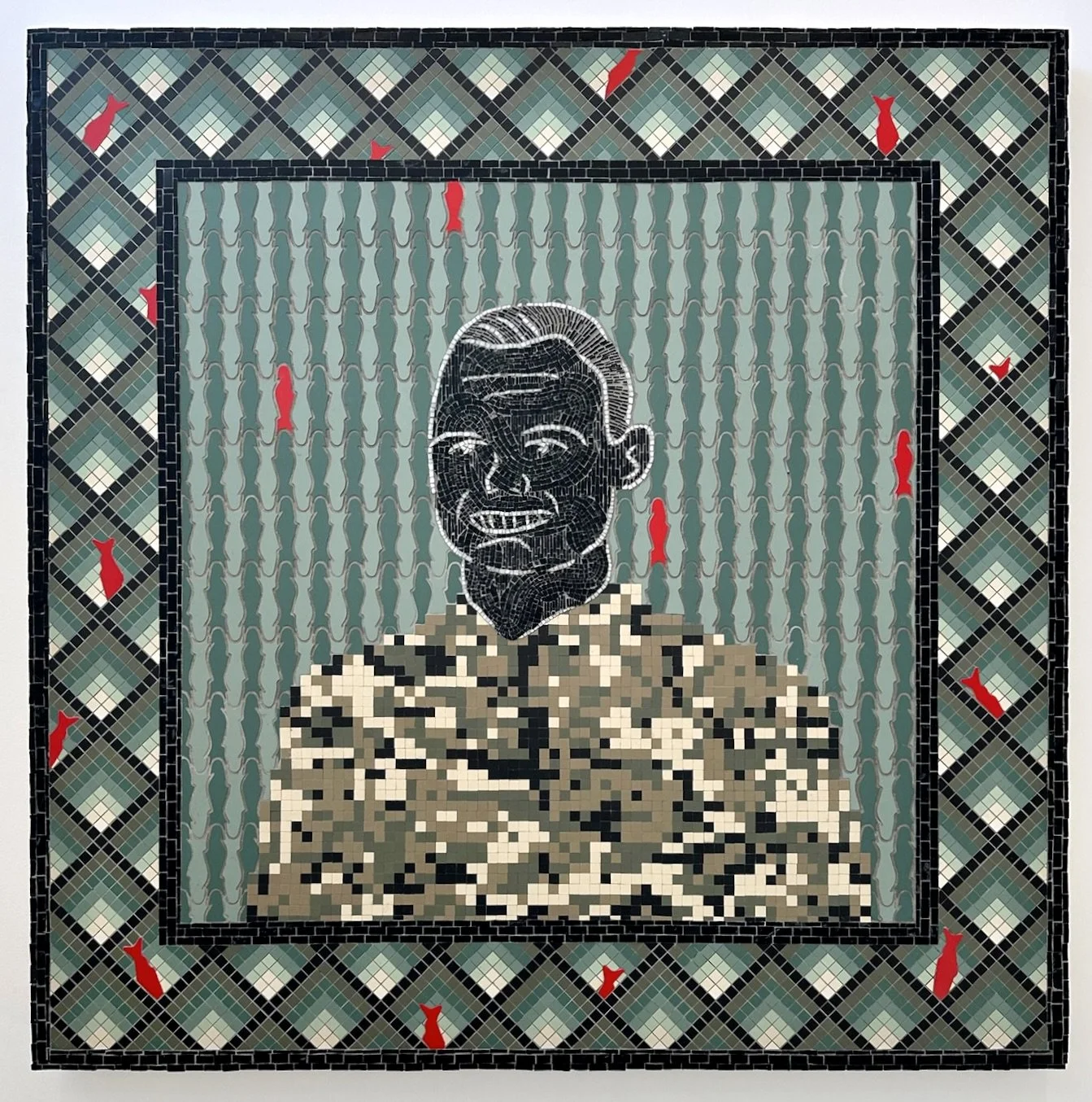 In this exhibition, Lefebvre borrows from millennia-old mosaic techniques to create works that refer to navigational maps, military vessels, and camouflage patterns. These pieces “respond(s) to the impulse to seek refuge in institutional power as a way to counter vulnerability.” By painstakingly crafting these images from hand cut and laid tiles, using processes rooted in ancient civic architecture, and still in use today, he highlights the enduring and insidious influence of historical empires, as well as considers “the viability of craft, its ongoing deterioration and the use of antiquated techniques as a mode of storytelling.”