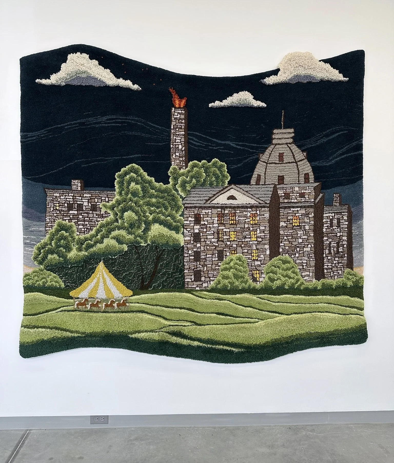 Jodie Mim Goodnough creates wall-hung, tufted wool pieces using contemporary rug-making techniques. Her work recontextualizes and manipulates historical imagery “in order to address issues such as medical patriarchy, physical isolation and bodily anxiety.” For the work in “Old Wives’ Tales”, she borrows and expands on illustrations from “Ten Days in a Madhouse”- an 1887 investigative journalism piece by Nellie Bly, for which the author went undercover as a patient in order to expose the deplorable conditions and abuse of patients inside Women’s Lunatic Asylum on Blackwell’s (now Roosevelt) Island.